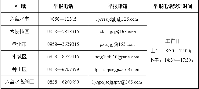 本通知布告自觉布之日起生效,欢送泛博师生及社会积极参取“校园餐”食物平安监视举报,峻厉冲击校园食物违法违规行为,保障泛博师生的饮食平安,按照《市场监管范畴严沉违法行为举报励暂行法子》《市场监管总局 财务部关于对食物出产运营企业内部举报人举报实施励的通知布告》和《六盘水市“校园餐”严沉食物平安违法行为举报励打点工做手册》的相关,现将市、区两级市场监管部分“校园餐”食物违法违规行为举报德律风及邮箱公示如下。